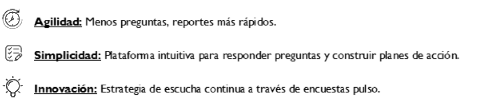 Las encuestas Pulso son una herramienta proporcionada por Willis Towers Watson para conocer el nivel de compromiso y de satisfacción de nuestros colaboradores de manera continua y en línea con las necesidades de la compañía. Estas encuestas son flexibles en la posibilidad de definir: